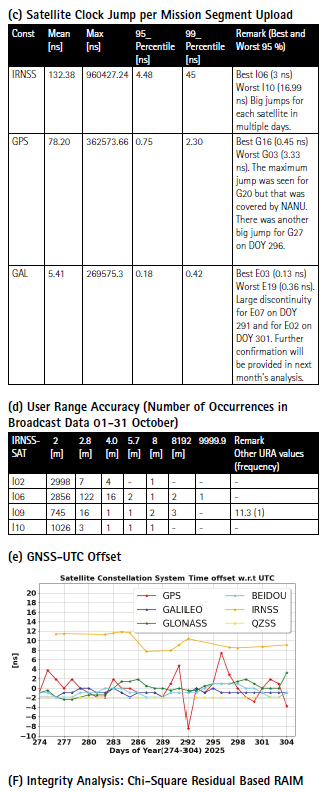 This article continues the monthly This article continues the monthly performance analysis of the GNSS constellation. Readers are encouraged to refer to previous issues for foundational discussions and earlier results. In addition, there is a short overview on the Chi-Square residual RAIM and the associated integrity analysis mechanism. analysis of the GNSS constellation. Readers are encouraged to refer to previous issues for foundational discussions and earlier results. In addition, there is a short overview on the recent anomaly and degradation in the UTC time dissemination parameter from GNSS broadcast messages.