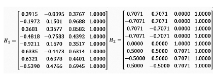 Two example cases are considered here for the demonstration. Geometry matrix H1 representing a satellite to user geometry that is moderately poor and the H2 matrix that is geometrically very good. Based on above mathematical discussions, the fault case analyzed for each satellite and the worst fault satellite is identified along with the total contribution to the probability of the HMI.